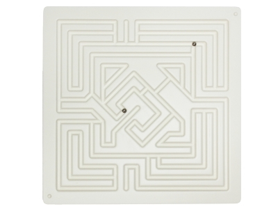 Балансир состоит из квадратной основы размером 40х40х1,2 см с желобками для прокатывания шарика, закрытой несъемной прозрачной панелью, металлического шарика, подставки-опоры.