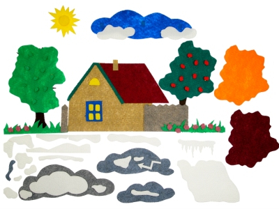 С помощью ярких и красивых ковролиновых деталей на многоразовых липучках домики превращаются в осенний, зимний, весенний и летний. Набор рекомендован опытными педагогами дошкольного образования для того, чтобы в игровой форме познакомить ребёнка с разными временами года.