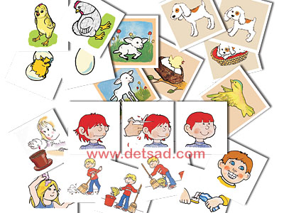 № 2. Предложите ребенку самостоятельно разложить все карточки по сериям. Побуждайте ребенка давать объяснения своему выбору.
