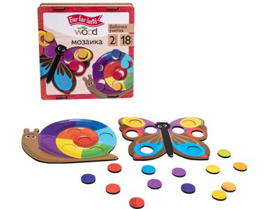 Деревянная мозаика «Бабочка и улитка» - это развивающая игра-головоломка для малышей.