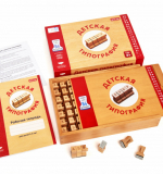 Состав набора: 84 деревянных штампа - буквы русского алфавита и знаки препинания. Штампы стыкуются между собой с помощью деревянного шипового соединения. Штампы поставляются в деревянном ящичке с отделениями.