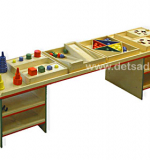 В комплект стола входит: стол,4 ящика с различными дидактическими материалами, пирамидки и счеты.