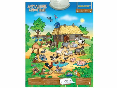 Звуковой плакат знакомит детей, как с животными, которых человек приручил, и которые служат человеку.