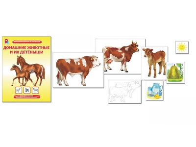 Выучить названия домашних животных, их внешний вид , а также как называется взрослое животное и его детеныш, помогут картонные карточки игры "Домашние животные и их детеныши".