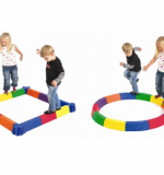 Дорожка состоит из 28 разноцветных деталей, которые можно соединить между собой в замкнутые пути, в форме кольца, а можно в форме четырехугольника с помощью 4 угловых крестообразных элементов.