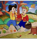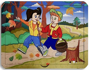 ВИТ 8154 Двухслойный смарт-пазл "Грибники" / 19*14см, дерево