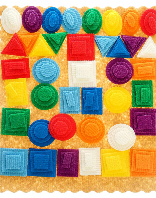 Фигуры из ковролина 3-х размеров,8-ми цветов (красный, жёлтый, зелёный, синий, оранжевый, голубой, фиолетовый, белый):