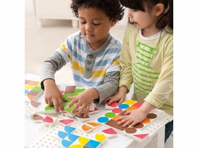 " Представляет собой мозаику, основными элементами которой являются квадратные фишки с изображением различных геометрических фигур, втыкающиеся в платформу-основу.