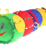 Также гусеница несет на себе множество застежек (шнуровка, липучка, карабин, молния) и навесных элементов (листочек, яблоко и др.), которые малышу будет интересно перебирать, расстегивать, дергать, развивая при этом маленькие пальчики!