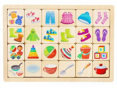 Ложку – к посуде, резиновые сапожки – к обуви, мячик – к игрушкам. Раскладывая таким образом пазлы самостоятельно или с помощью взрослого, малыш не только весело и увлекательно проведет время, но и научится логически мыслить, визуально воспринимать и отличать между собой предметы на картинках, а также узнает новые слова.