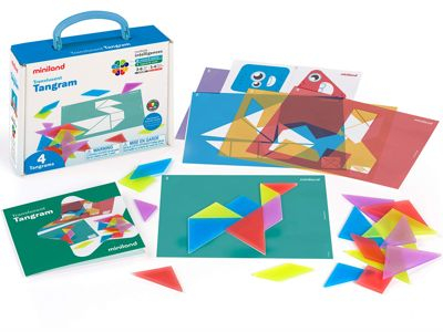 В комплекте 28 полупрозрачных деталей танграма, 6 игровых карт, инструкция