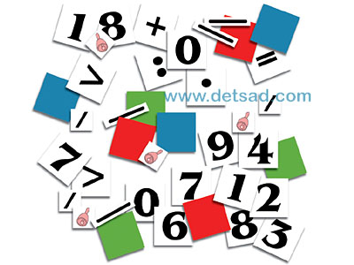 - карточки с цифрами и знаками арифметических действий - 64 шт.