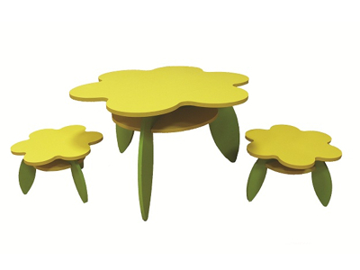 АМ 11.16.01 Игровая мебель Кувшинка / желт-зел стол,3табурета (стол-d=81см, стул-d=40см, фанера, лак