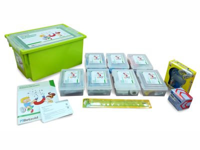 включая образцы магнитных и немагнитных материалов, магниты 4-х разных форм, неразъемные коробочки с железным порошком; компасы, 2 машинки длиной 10 см, подставку для надевания магнитов, тонкий шнур, линейку, металлические скрепки, электромотор, провод, 27 рабочих карт; рабочие листы для записи результатов экспериментов, инструкцию с детальными описаниями и дополнительной информацией; пластиковый контейнер с крышкой для хранения материалов.