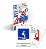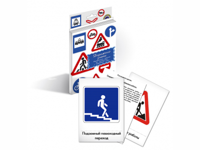 В набор входит 16 карточек со знаками: «Пешеходный переход», «Дети», «Движение пешеходов запрещено», «Подземный пешеходный переход», «Дорожные работы», «Движение на велосипедах запрещено», «Движение прямо или направо», «Остановка запрещена», «Движение прямо», «Пешеходная дорожка», «Место остановки автобуса и (или) троллейбуса», «Место остановки трамвая», «Телефон», «Пункт первой помощи», «Въезд запрещен», «Велосипедная дорожка».