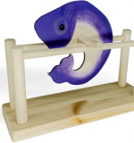 Кит забавно перекатывается по двум перекладинам справа налево и обратно, пока совсем не остановится.