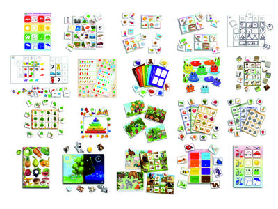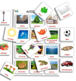 - Развивающее пособие Ассоциации (Основа формат А4 – 1 шт., Карточки с предметами на липучках – 12шт.)
