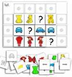 - Дидактическая игра – Логические цепочки (Основа формат А4 с логическими цепочками – 2шт., Карточки – 24 шт (3см х 3см)