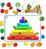 - Развивающее дидактическое пособие Витаминная пирамида (Основа формат А4 – 1 шт., Карточки овощи, ягоды, фрукты – 28шт., Карточки “Собери по образцу” – 6 шт., Инструкция с заданиями – 1шт.)