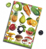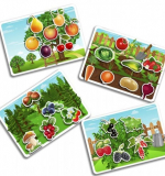 - Увлекательная игра “Фруктово-ягодные заплатки” (Основа с изображением -1шт. (формат А4), Карточки-заплатки на липучках- 12 шт.)