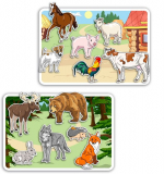 - Умные липучки “Верни животного домой” (Основа «в лесу» и «в деревне» формат A5 – 2шт., Фигурные карточки с животными – 12шт.)