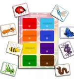 - Обучающее игровое пособие – Подбери по цвету (Основа с цветом – 1шт., Карточки с цветными насекомыми – 8шт.)
