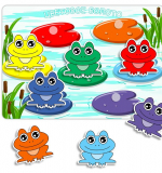 - Интерактивное пособие ЦВЕТОВОЕ БОЛОТО (Игровое поле формат А4 – 1шт., Карточки-лягушки из мягкого пластика – 7шт.)