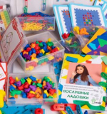 500 деталей 3-х форм и 6-ти цветов соединяются в цепочки. Во время занятий с набором дети осваивают логическое мышление.
