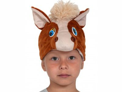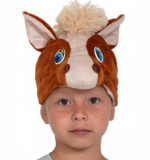 Карнавальная шапочка для костюма лошадки Коня, из плюша для мальчиков 3-8 лет, размер 53-55 см.