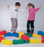 Пластмасса. Крупногабаритный конструктор с деталями в виде сдвоенных восьмиугольных элементов, соединяющихся по принципу ЛЕГО.