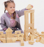 В комплекте 68 деталей 10-ти видов (параллелепипеды, арки, равносторонние треугольники, кубы, кубы с отверстием в центре, цилиндры, полуцилинды и др),
