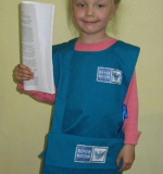 В комплекте имеется накидка насыщенного синего цвета, украшенная нашивкой "Почта России" с изображением герба Российской Федерации и сумка для важных бумаг, писем, извещений.