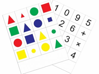 В комплект входит 2 коврика: "Геометрические фигуры" и "Цифры и знаки". Размер одного коврика: 620х750мм, размер ячейки 150х150мм.