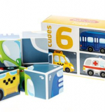 В набор входят 6 кубиков из пластмассы. Картинки нанесены на поверхность кубиков с помощью прямой печати, что, в отличие от обклейки, позволяет изображению дольше оставаться ярким и цельным.