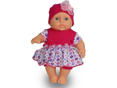 Куклу можно купать, так как у неё вставные не закрывающиеся глазки, рельефный кукольный паричок и нет звукового устройства.