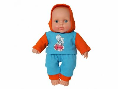 Комплект: пупс в футболке с длинным рукавом и брюки, застежка сзади на контактную ленту, спереди на футболке термоаппликация "Вишенка".