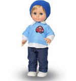 Комплект одежды куклы состоит из рубашки из сорочечной ткани, с длинными рукавами с манжетами, стояче-отложным воротником, застёжкой спереди на 3 пуговки, брюк из джинсовой ткани, с манжетами по низу, вязаного джемпера застёжкой сзади на «Велкро», шапки из трикотажа, трикотажных носков. Обувь: кроссовки.