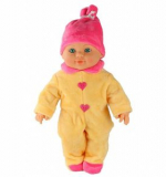 Тело куклы полностью выполнено из эластичного, приятного на ощупь винила. Глазки малышки вставные, не закрывающиеся, имеет рельефный кукольный паричок, без звукового модуля.
