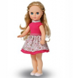 Кукла одета в трикотажное платье и туфли.