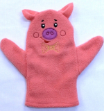 Мягкая яркая рукавичка представляет всем известных животных или сказочных персонажей. Она сшита из флиса, а мордочка (лицо) вышито.