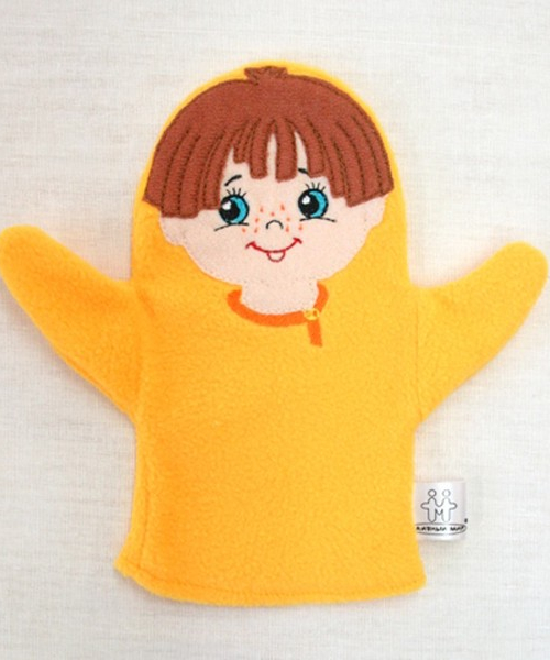 Мягкая яркая рукавичка представляет всем известных животных или сказочных персонажей. Она сшита из флиса, а мордочка (лицо) вышито.