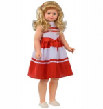 Переодевания развивают мелкую моторику рук и творческое мышление. Кукла одета в белое шифоновое платьице, украшенное красными атласными лентами, и обута в сандалики.