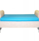 АВ Кушетка с подлокотниками на хромир.ножках / бежево-голубая, 123*50*50см, ВИК, поролон