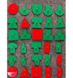 - эталонные фигуры с держателями – красного цвета – 5 шт., составные фигуры зелёного цвета – 20 шт., половинки эталонных фигур красного цвета – 10 шт.;