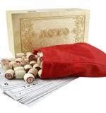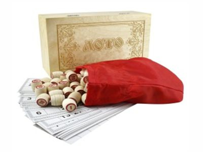 Комплектность: шкатулка деревянная, лото в мешке, карточки, фишки