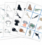- 30 карточек с теневым изображением обитателей морей;
