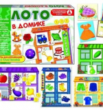 В комплекте игры: карты лото – 6 шт., карточки – 36 шт., карты для аппликаций из пластилина – 4 шт., „Вывески” – 6 шт., „Цены” – 20 шт., „Монетки” – 58 шт., правила игры – 1 шт.