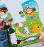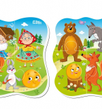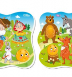Комплектация: В наборе 2 пазловые картинки: дед и бабка с Колобком и зайцем, а также медведь, волк, лиса и Колобок. Каждый пазл состоит из 3–4 крупных элементов. Общее количество деталей — 7 штук.