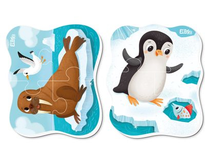Комплектация: В наборе 2 пазловые картинки: тюлень и пингвин. Каждый пазл состоит из 3–4 крупных элементов. Общее количество деталей — 7 штук.