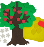 Интересное дидактическое пособие для знакомства дошкольников с временами года на практике – конструктор-аппликация из ковролина Маленькое дерево позволяет наряжать дерево аксессуарами, которые являются признаками зимы, весны, лета и осени. Игра увлекает ребёнка, и он не замечает, как запоминает новые слова, развивает речь и логику.